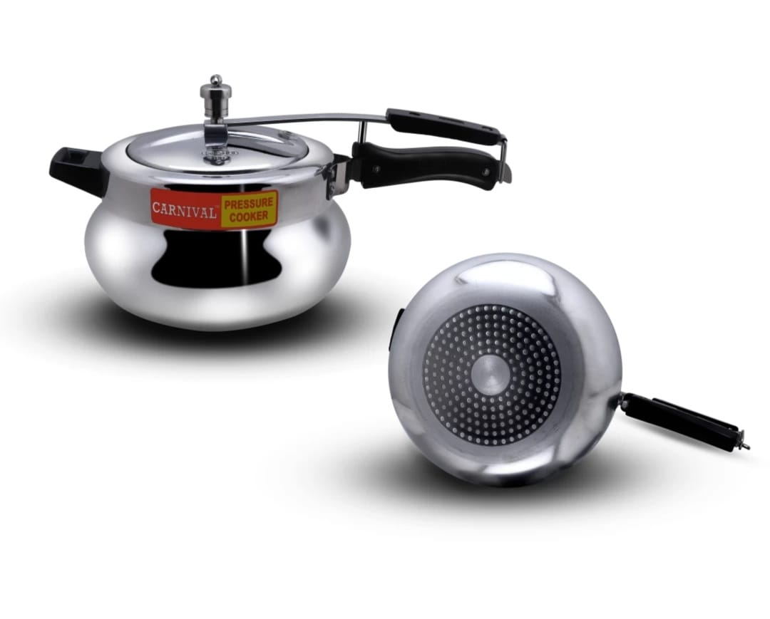 Carnival  Induction base pressure Cooker which is perfect for making healthy and yummy dishes for a large group in no time. Boasting of a glossy finish in silver, this aluminium pressure cooker gives you trouble-free cooking results. Designed with a induction base, this pressure cooker is perfect for use on gas stoves. Promising excellent performance and quality, the Carnival Cooker is the right implement for your kitchen.